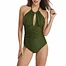 Women's Halter Neck Swimwear Ruched Monokini Bathing Suit One Piece Swimsuits